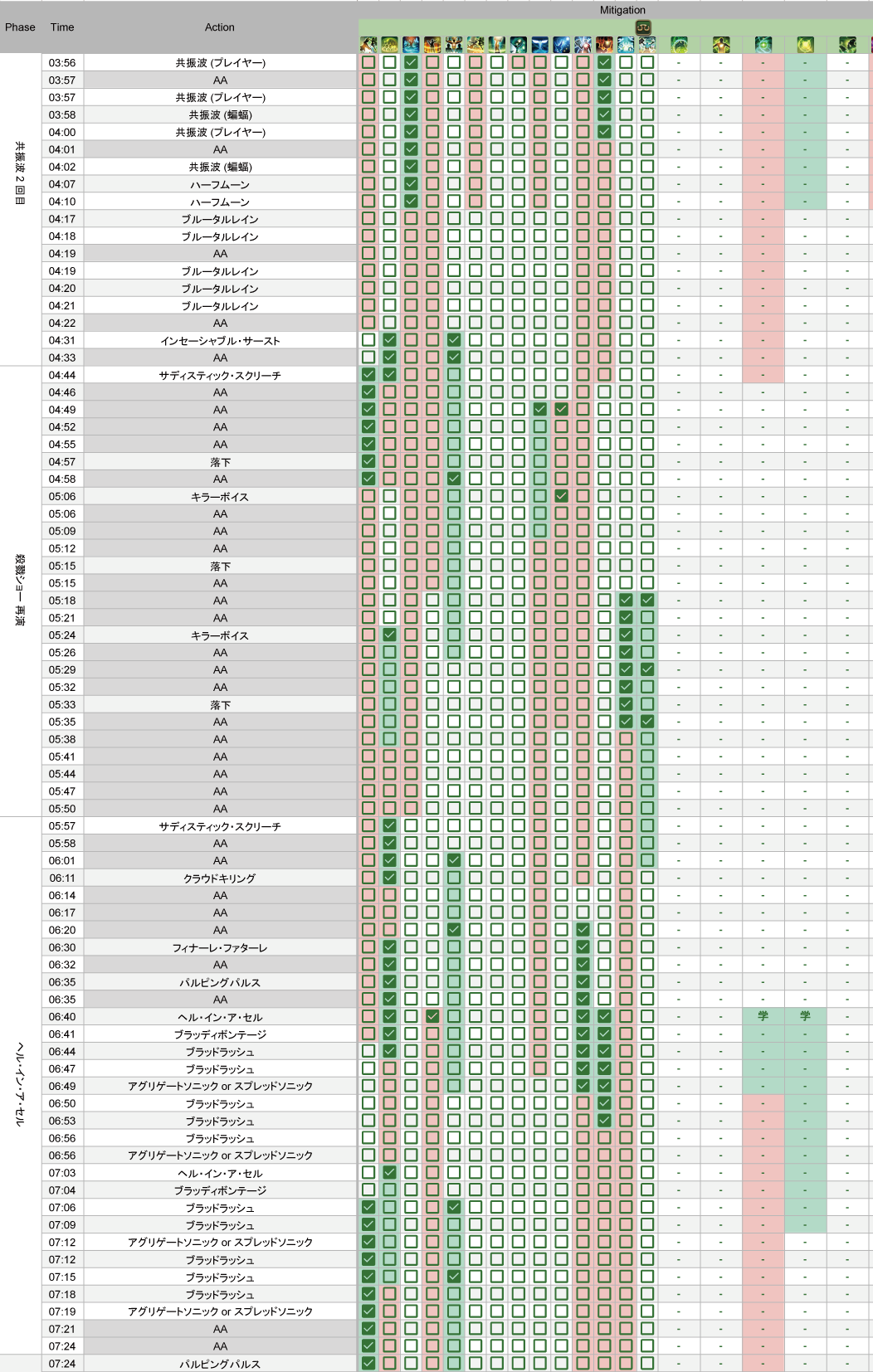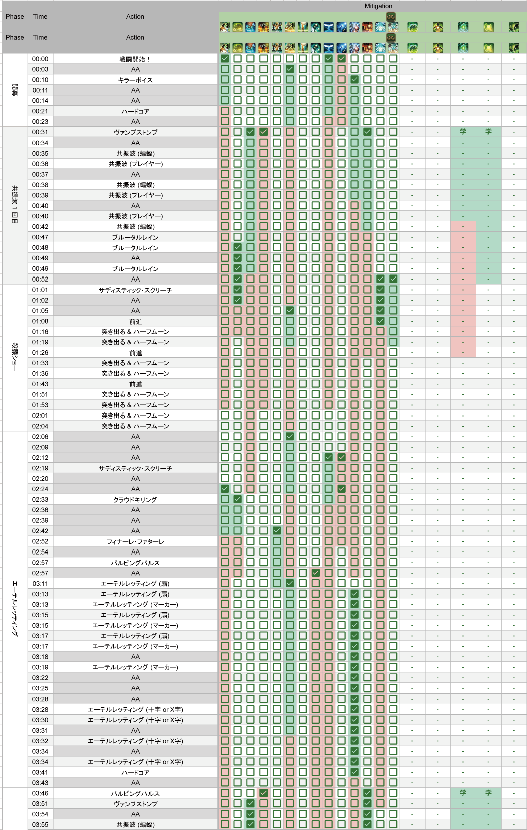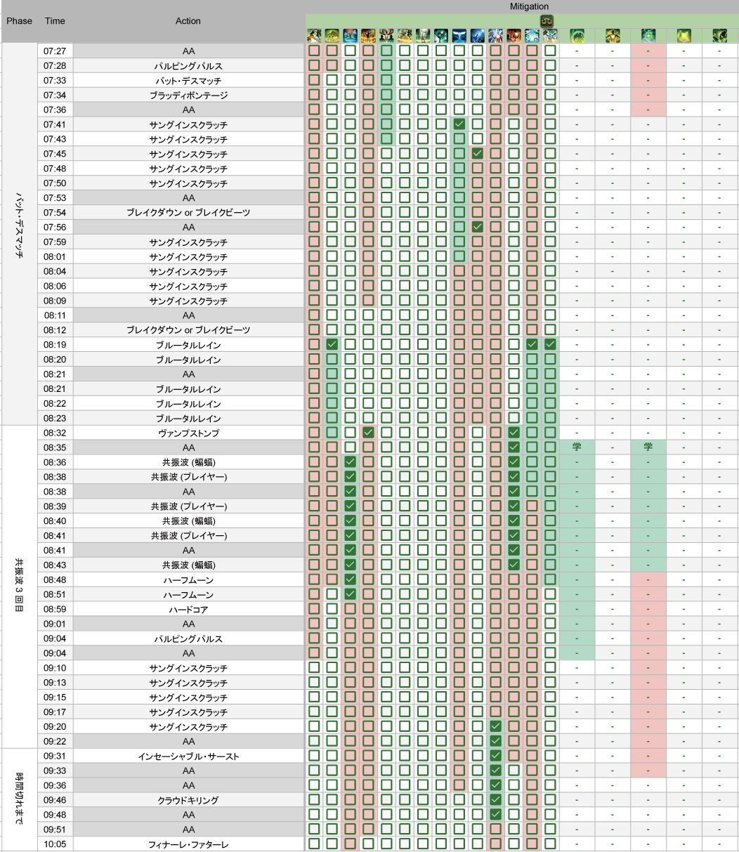 頭割り一回目は基本陣と士気(セラフィ)だけでどうにかなりますが二回目の頭割りは相方ヒラ次第で足りなければ不屈等挟んで士気も適宜入れてください。